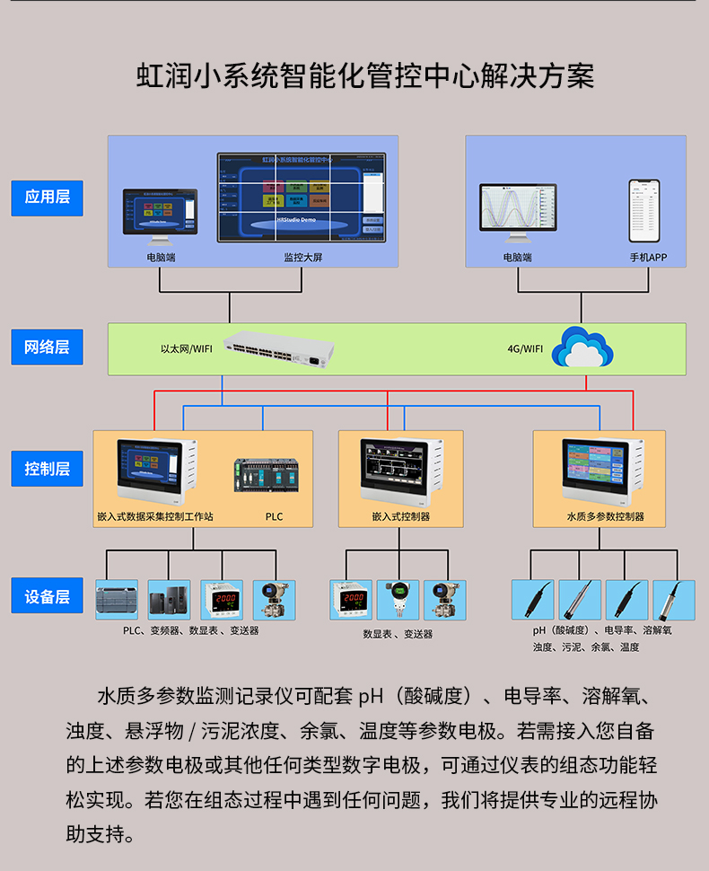 虹潤公司是專業(yè)生產水質分析儀的國家專精特新“小巨人”企業(yè)。生產的水質多參數(shù)監(jiān)測記錄儀,具有多參數(shù)采集同屏顯示,數(shù)據(jù)記錄與轉存,支持WiFi或4G實現(xiàn)數(shù)據(jù)云方案,內置與外配組態(tài)軟件等特點。產品獲得一種適應性強PH控制儀、嵌入式數(shù)據(jù)采集工作站、數(shù)據(jù)采集控制工作站、無紙記錄儀、智能化控制器等5項國家發(fā)明專利;主持起草通信系統(tǒng)多通道數(shù)據(jù)采集控制終端規(guī)范軍用標準,物聯(lián)網(wǎng)智能記錄儀表通用技術條件國家標準,以及現(xiàn)場設備集成等5項智能制造國家標準,參與國際5G標準制定;取得PH無紙記錄儀等7項相關軟件著作權。產品廣泛應用于實驗室、水處理、環(huán)境監(jiān)測、食品、制藥、農業(yè)、工業(yè)流程控制等諸多領域。