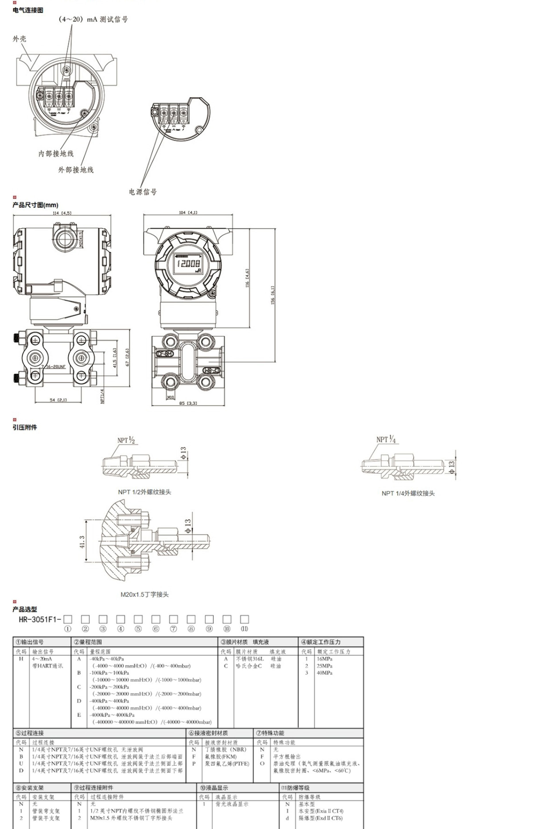 HR-3051F1智能單晶硅差壓變送器